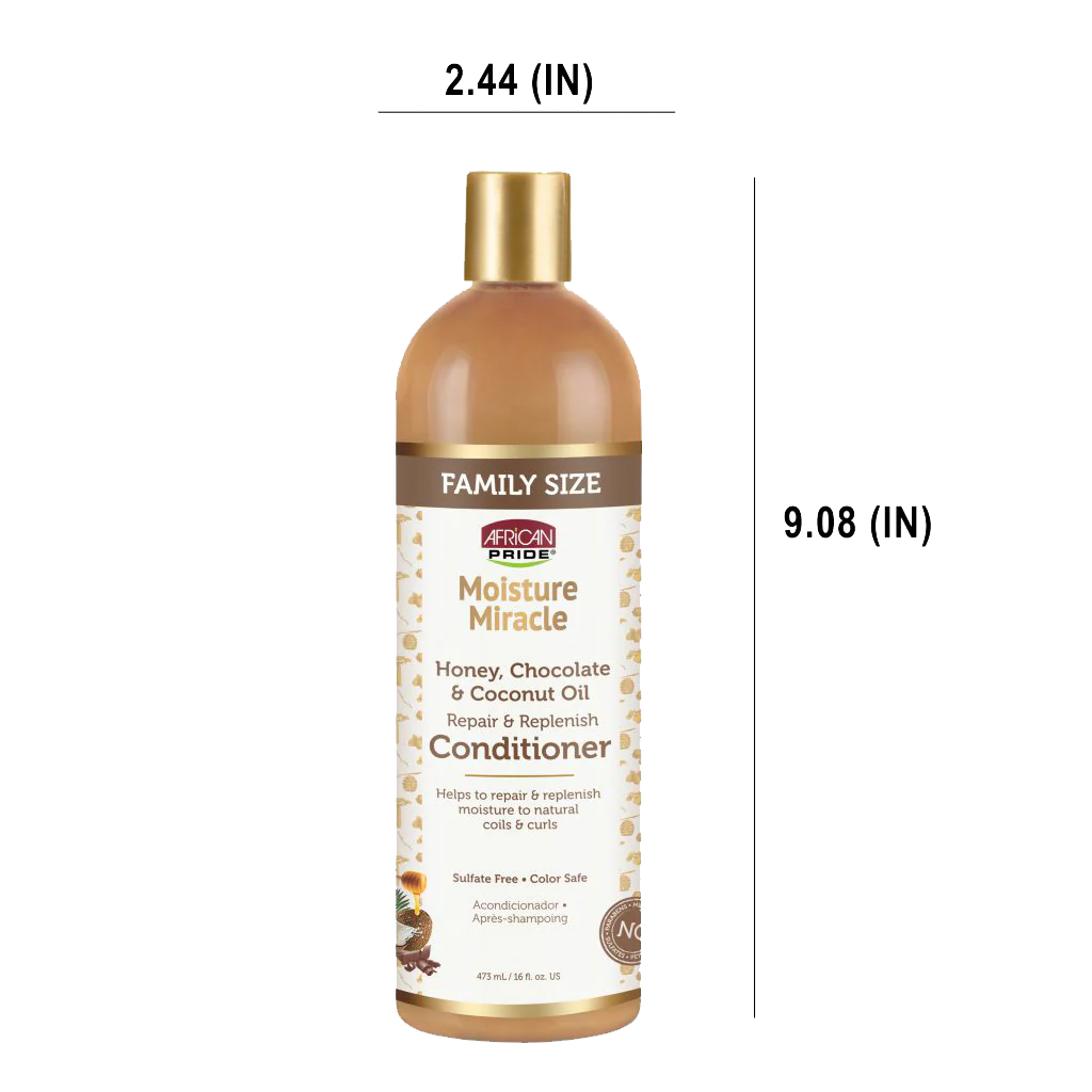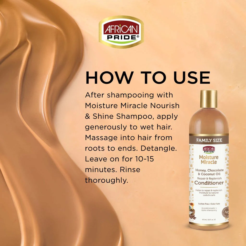 PROVEN HAIR CARE - The moisturizing blend of African Pride Moisture Miracle Honey, Chocolate & Coconut Oil Conditioner uses the natural benefits of Honey & Coconut Oil for hair, plus the restorative benefits of Chocolate to hydrate & nourish dry coils & curls.