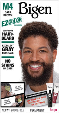 Bigen EZ Color for Men works on both your hair and beard with excellent gray hair coverage. EZ Color won't stain skin, doesn't drip and provides a natural looking color that lasts. EZ color's cream formula is easy to apply. Simply comb EZ Color into your hair or beard, wait 10 minutes, then rinse. EZ Color for Men comes in two re-sealable tubes, which means you use what you need, and save the rest for touch-ups or your next hair color application.