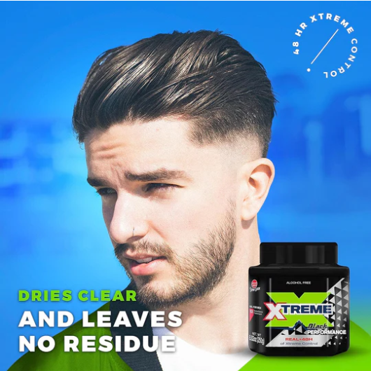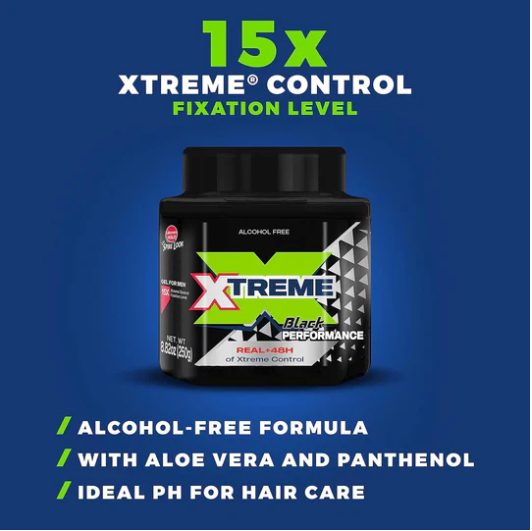 Xtreme hair gel holds style in place for 48 hours; with its 15x fixation level, you can do a variety of hairstyles without hair feeling heavy or sticky