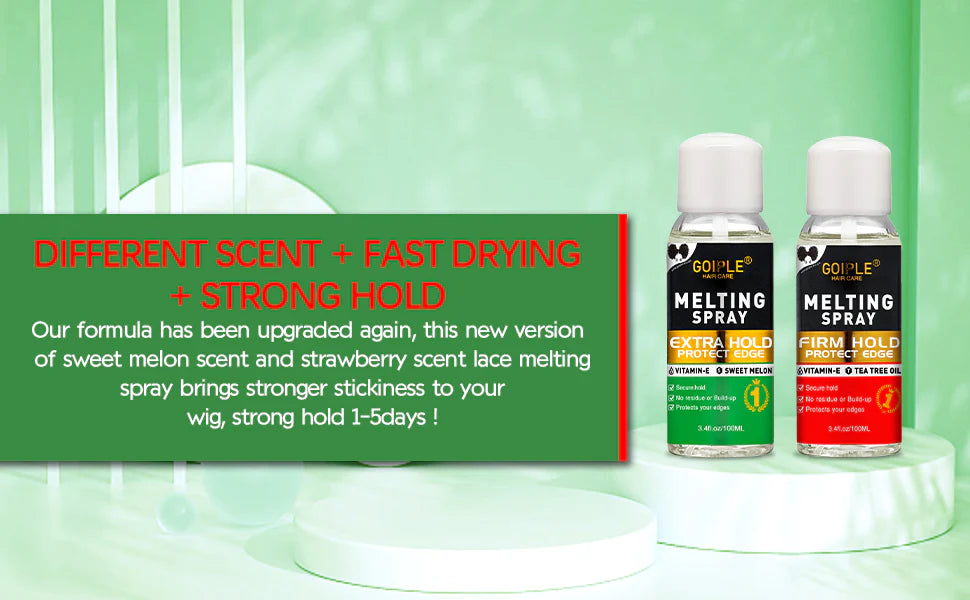 Stronger Hold, Longer Wear: The upgraded watermelon version of our lace melting spray offers an extra-strong hold, keeping your wig in place for 1-5 days. No more worrying about slippage or the dreaded wig mishap!