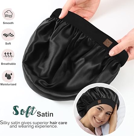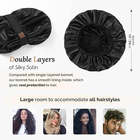 Soft as silk, breathable as cotton and effective in reducing hair friction when sleeping. This double layered satin bonnet is made of butter satin on both sides, gives you real hair care while adding a lot of comfort.