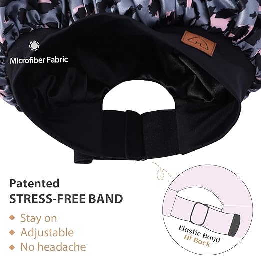 Hate the marks bonnet leaves on forehead? This updated Sleep Bonnet is for you. "Less Elastic, More Comforts" is the concept our designer adheres to when creating it because elastic band brings much stress while offering elasticity. We use a soft microfiber fabric as main part of band and just a 5 inch elastic at back for size adjustment and creatively add a hole to allow hair access easily. Bonnets with this band are approved comfortable to wear and staying on all night.