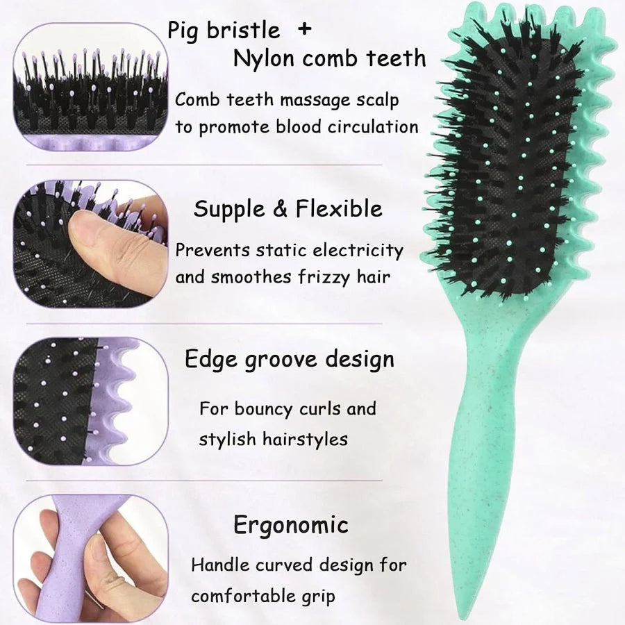 Ergonomic handle and strategically placed bristles define, shape and detangle curls effortlessly. Special teeth design helps split hair evenly for a more comfortable styling experience.
