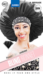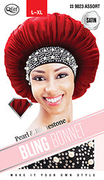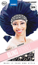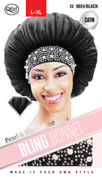 Qfitt Satin Pearl & Rhinestone Bling Bonnet
